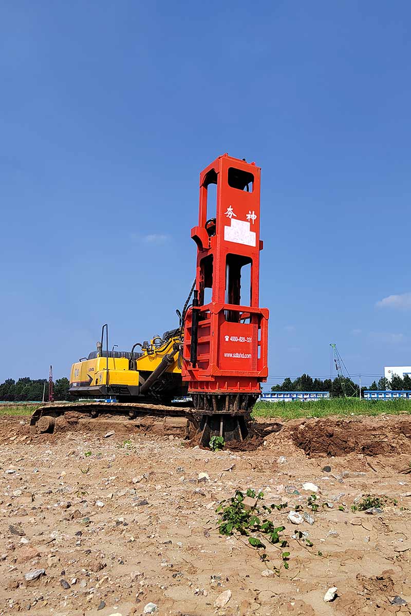 多功能液壓振動夯,又稱振動錘、挖掘機打樁機、挖掘機改裝打樁機等。挖掘機改裝多功能液壓振動夯可打6米、9米、12米、15米、18米長的鋼板樁,以及10米以內的水泥預制樁。多功能液壓振動夯主要由輔助臂、旋轉連接支架、主機箱、夾具、管道五部分組成。挖掘機多功能液壓振動夯源于挖掘機液壓系統液壓,通過專利技術安裝變頻液壓管道。它可以導出主動力,加速流量。